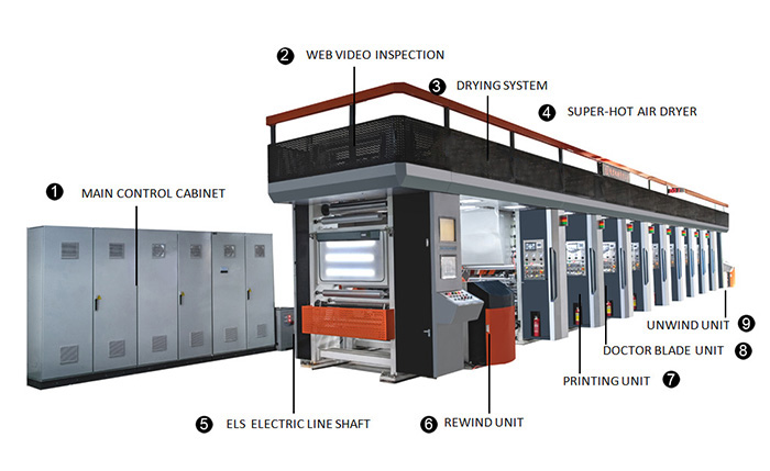 | 配置(8色凹版印刷機) | 電子軸凹版印刷機 | |||