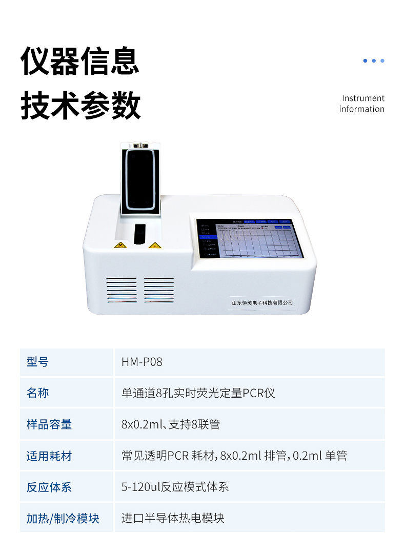 HM-P08型號非洲豬瘟檢測儀器的原理:聚合酶鏈?zhǔn)椒磻?yīng)(polymerase chain reaction,PCR)是一種用于放大擴(kuò)增特定的DNA片段的分子生物學(xué)技術(shù),它可看作是生物體外的特殊DNA擴(kuò)增,由高溫變性、低溫退火及適溫延伸等幾步反應(yīng)組成一個溫度循環(huán)周期,使目的基因得以迅速擴(kuò)增,具有特異性強(qiáng)、靈敏度高、操作簡便、省時等特點(diǎn),是基因擴(kuò)增技術(shù)的一次重大革新。PCR技術(shù)可將極微量的目標(biāo)DNA特異地?cái)U(kuò)增上百萬倍,從而大大提高對DNA分子的分析和檢測能力。