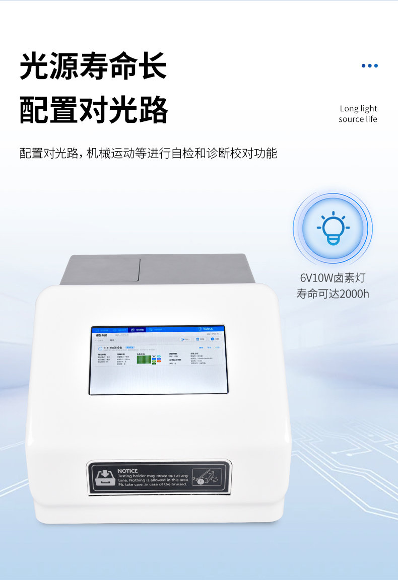 光源壽命長(zhǎng): 光源采用6V10W鹵素?zé)?,壽命可達(dá)2000h;