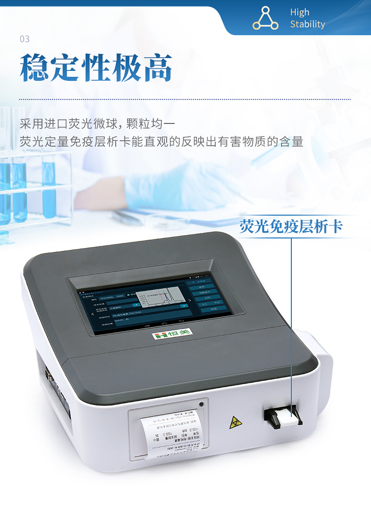 1、穩(wěn)定性極高:采用進(jìn)口熒光微球,顆粒均一,從源頭保證產(chǎn)品穩(wěn)定性好,批次內(nèi)、批次間重現(xiàn)性好。試劑條可常溫運(yùn)存,無(wú)需冷藏。檢測(cè)后,試劑條烘干后可保存一年,實(shí)現(xiàn)結(jié)果的可追溯性。采用恒溫器裝置,一條一孔,自動(dòng)計(jì)時(shí),不受外界溫濕度影響,適用場(chǎng)地更廣。