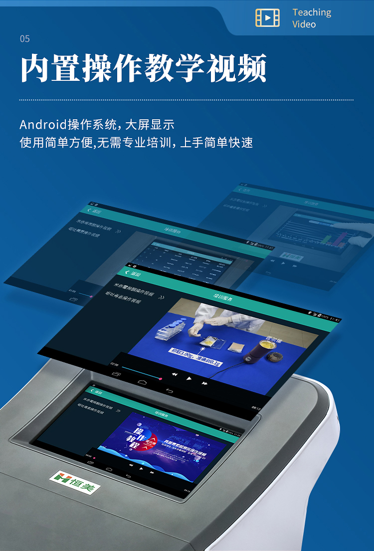 7、使用簡(jiǎn)單方便:儀器內(nèi)置檢測(cè)項(xiàng)目操作視頻,無(wú)需專(zhuān)業(yè)培訓(xùn),邊觀看儀器內(nèi)置操作視頻,邊做實(shí)驗(yàn),上手簡(jiǎn)單快速。