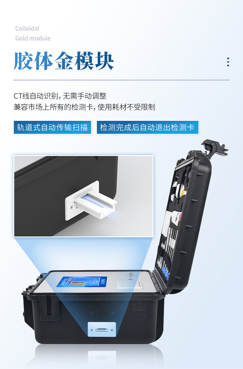 11、免疫層析檢測模塊檢測方式:軌道式自動傳輸掃描,檢測完成后自動退出檢測卡。