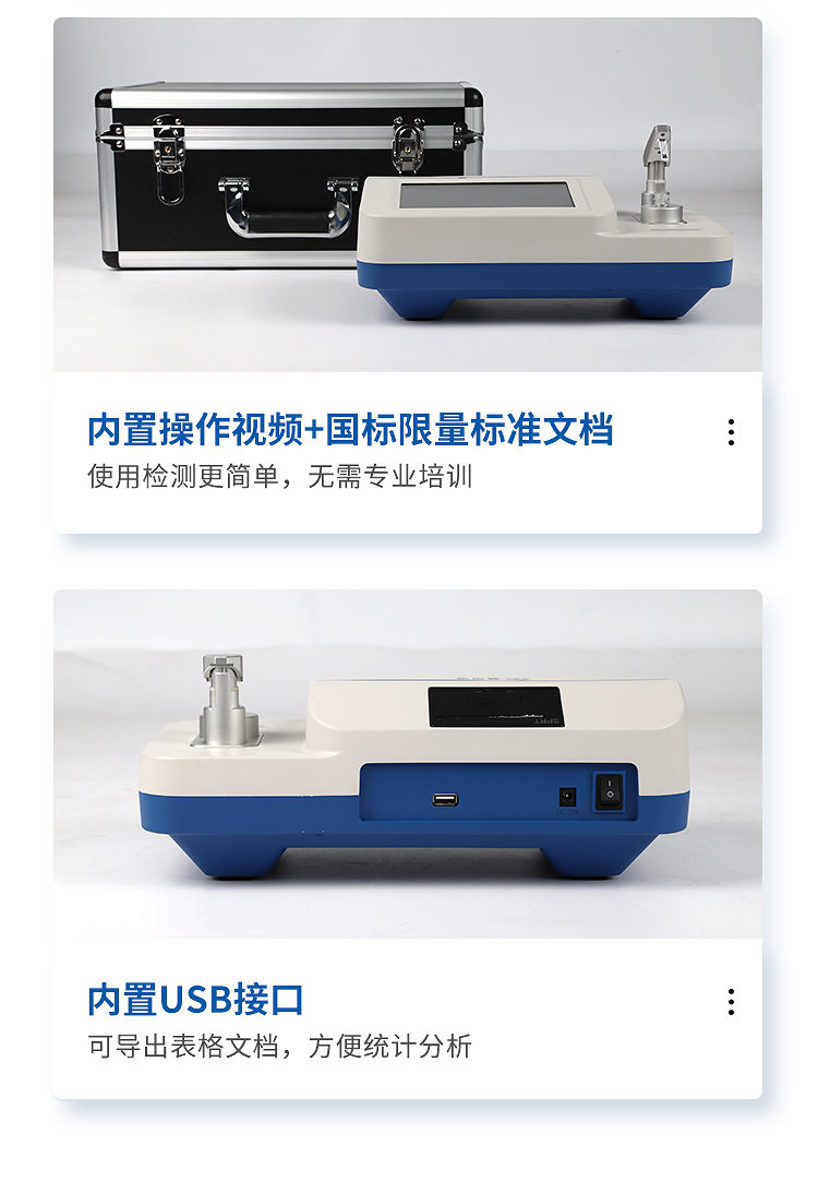 4、儀器內(nèi)置操作說(shuō)明書(shū)文檔和操作視頻,使用檢測(cè)更簡(jiǎn)單,無(wú)需專業(yè)培訓(xùn),適用于非專業(yè)人員現(xiàn)場(chǎng)檢測(cè);