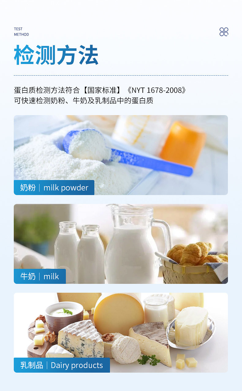 1. 檢測方法:蛋白質(zhì)檢測方法符合【國家標(biāo)準(zhǔn)】《NYT 1678-2008》