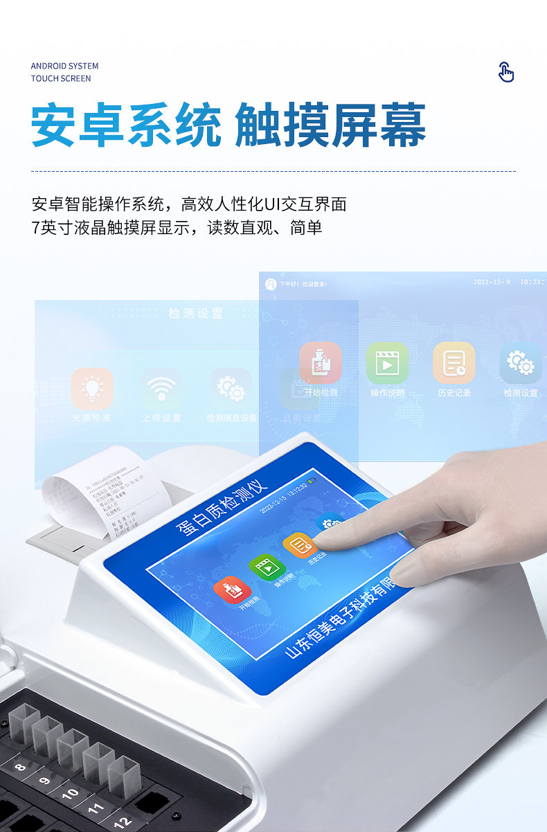 檢測項目:可快速檢測奶粉、牛奶及乳制品中的蛋白質(zhì),儀器預(yù)留其他項目檢測程序和端口,根據(jù)日后需求可方便的自主增加檢測項目。