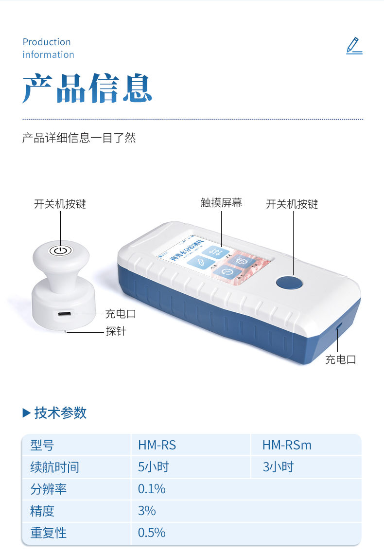 肉類水分快速測定儀通過向樣品注入高頻電信號并接收回波測量生肉含水量,相比GB18394-2020國標文件中的5.2節(jié)紅外線干燥法(快速法)更快速便捷,具有不需要制備樣品,檢測迅速,操作方便的優(yōu)點。