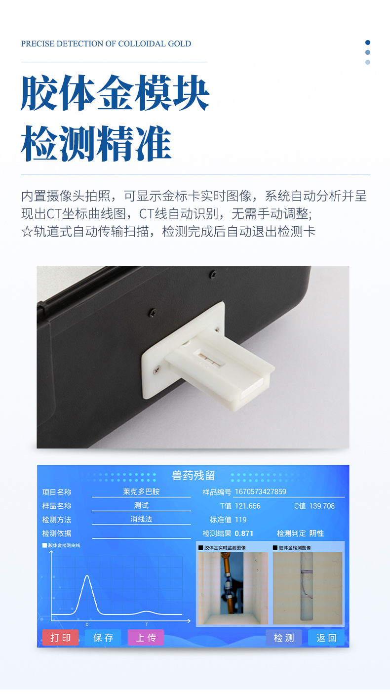 6、膠體金模塊檢測(cè)方式:軌道式自動(dòng)傳輸掃描,檢測(cè)完成后自動(dòng)退出檢測(cè)卡。