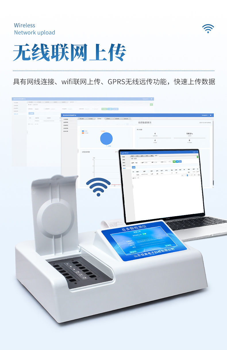 9、儀器帶有監(jiān)管平臺。數(shù)據(jù)可局域網(wǎng)和互聯(lián)網(wǎng)數(shù)據(jù)上傳,檢測結(jié)果直接傳至食品安全監(jiān)管平臺。進(jìn)行區(qū)域食品安全監(jiān)管及大數(shù)據(jù)分析處理,檢測區(qū)域食品安全長短期動(dòng)態(tài),達(dá)到食品安全問題預(yù)估、預(yù)警 。